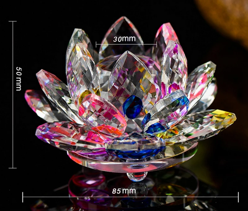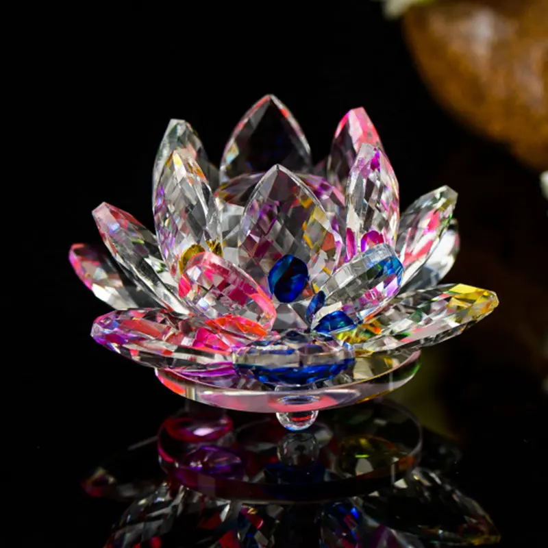 8cm Colourful Crystal Lotus Flower Figurine Artificial Glass Flowers Religious Souvenirs Home Decor