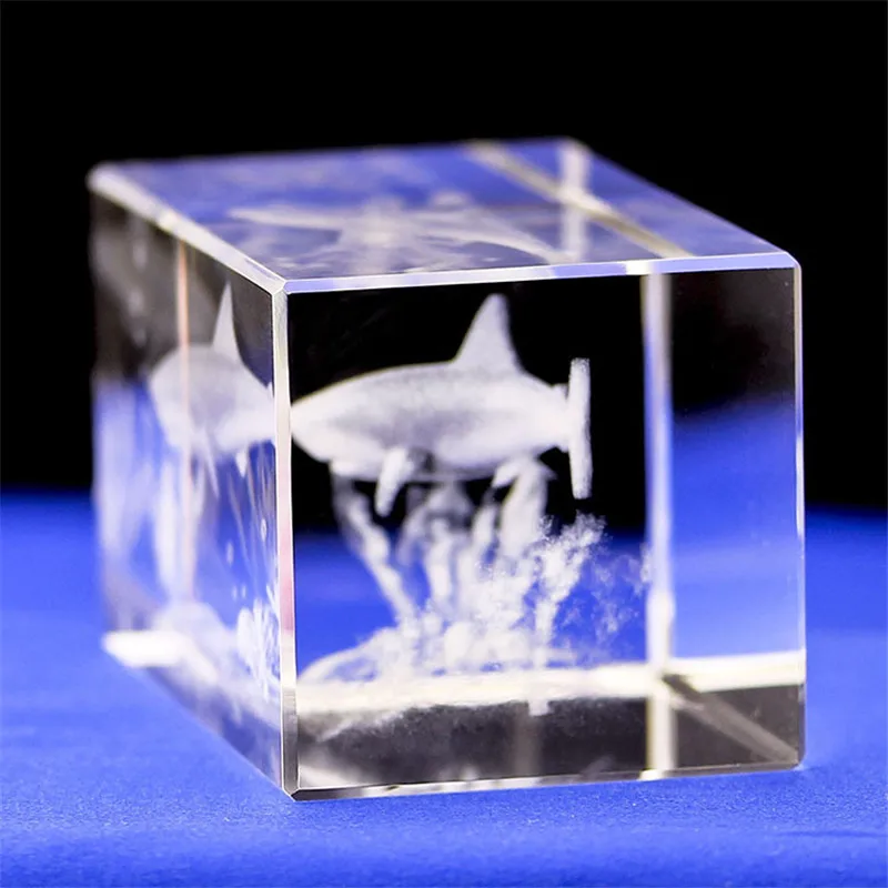 Feng shui Quartz Crystal 3D Carved Great White Shark Crafts Glass Ornaments Figurines Home Wedding