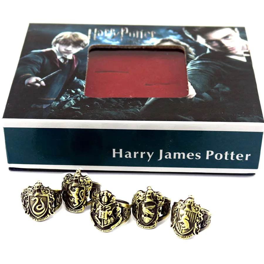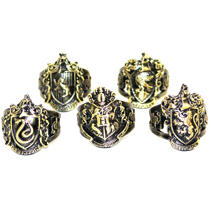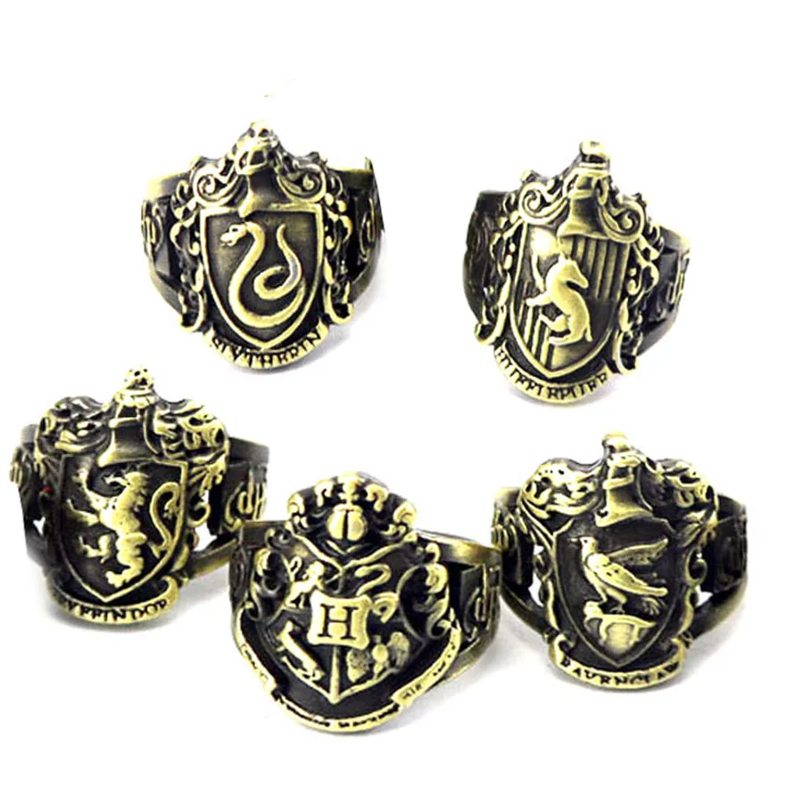 HIGH QUALITY Hogwarts College Badge Ring Movie souvenir Magic Gryffindor Slytherin Ravenclaw Hufflepuff Symbol M