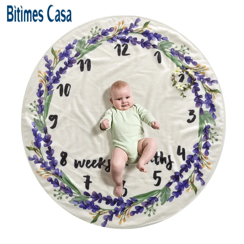 Review Top Vivid Printing Flannel Blanket Baby Growth Souvenir Record Round Shape Non-toxic Baby Flannel Blank