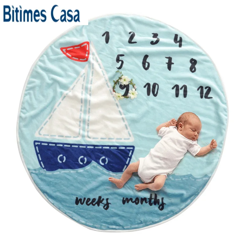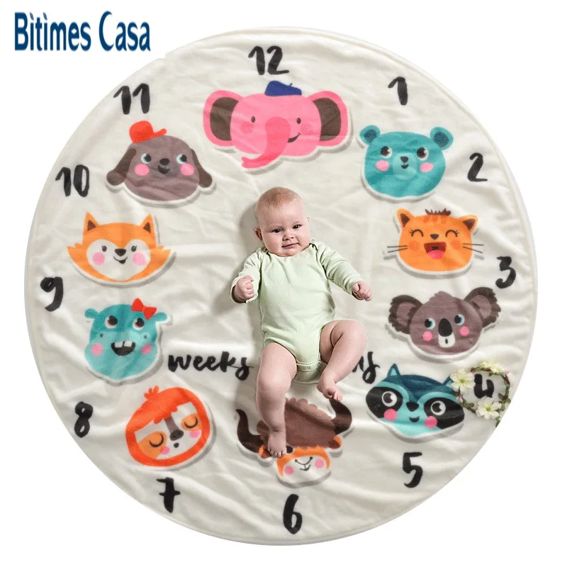 Vivid Printing Flannel Blanket Baby Growth Souvenir Record Round Shape Non-toxic Baby Flannel Blank