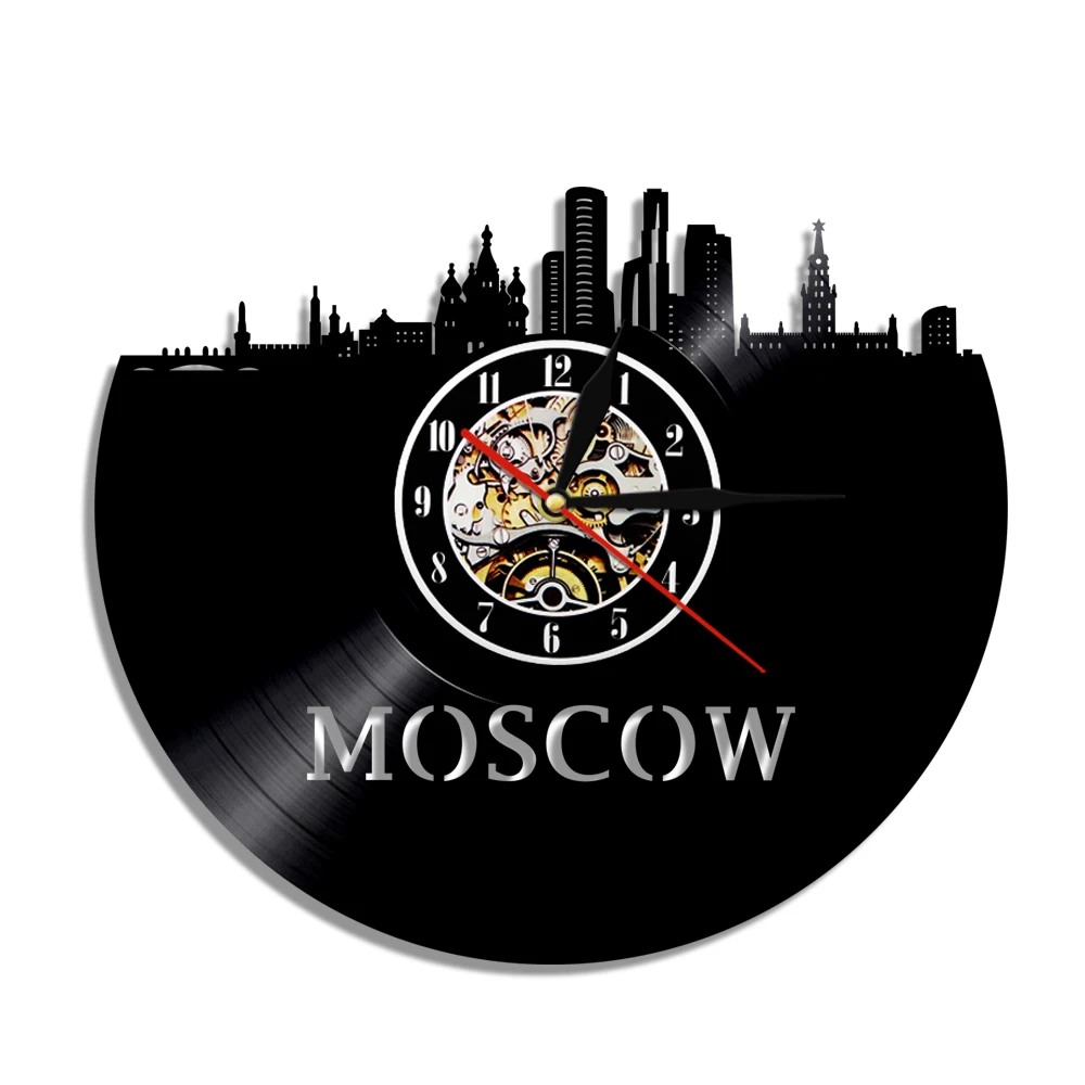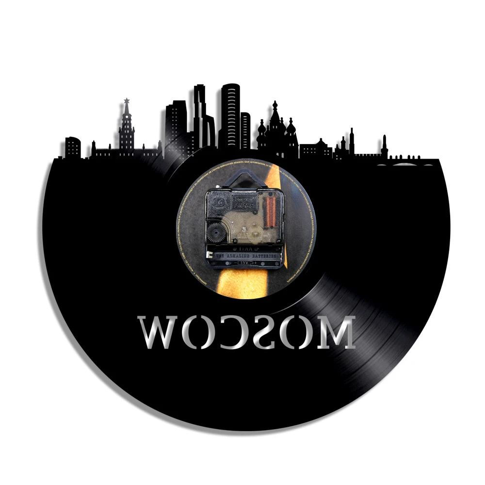BEST QUALITY 1Piece Moscow Skyline Vinyl Record Wall Clock Russian Federation Capital Wall Clock Cityscape Souve
