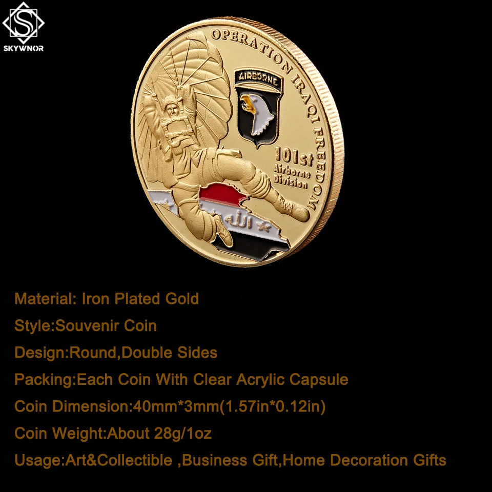 5PCS USA Challenge Gold Coin Military 101St Airborne Division Air Force Operation Iraqi Freedom Sou