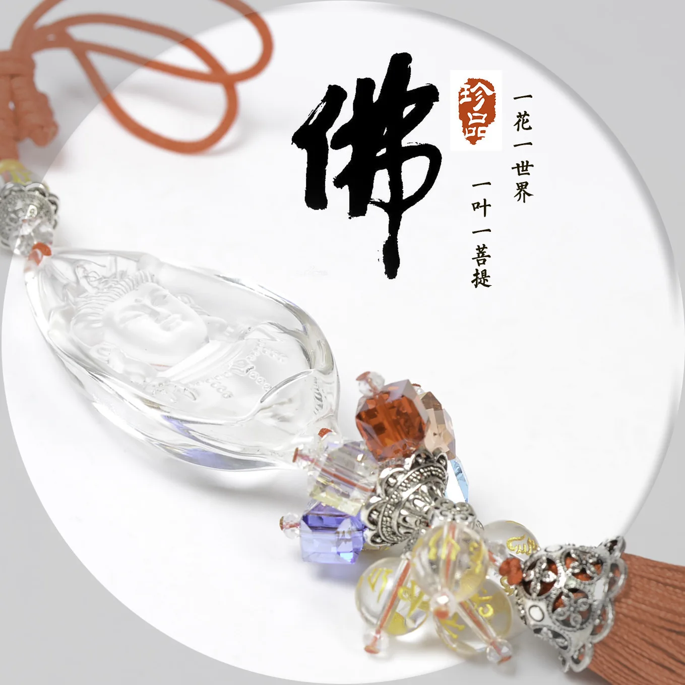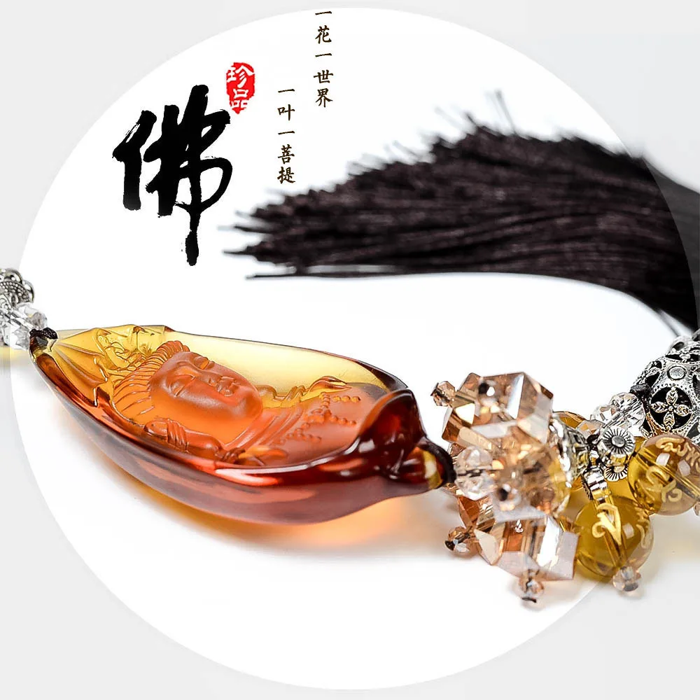 Ancient Coloured Glaze Buddha Head Pendant Car Interior Trim Decorations Car Mounted Hanging Decora