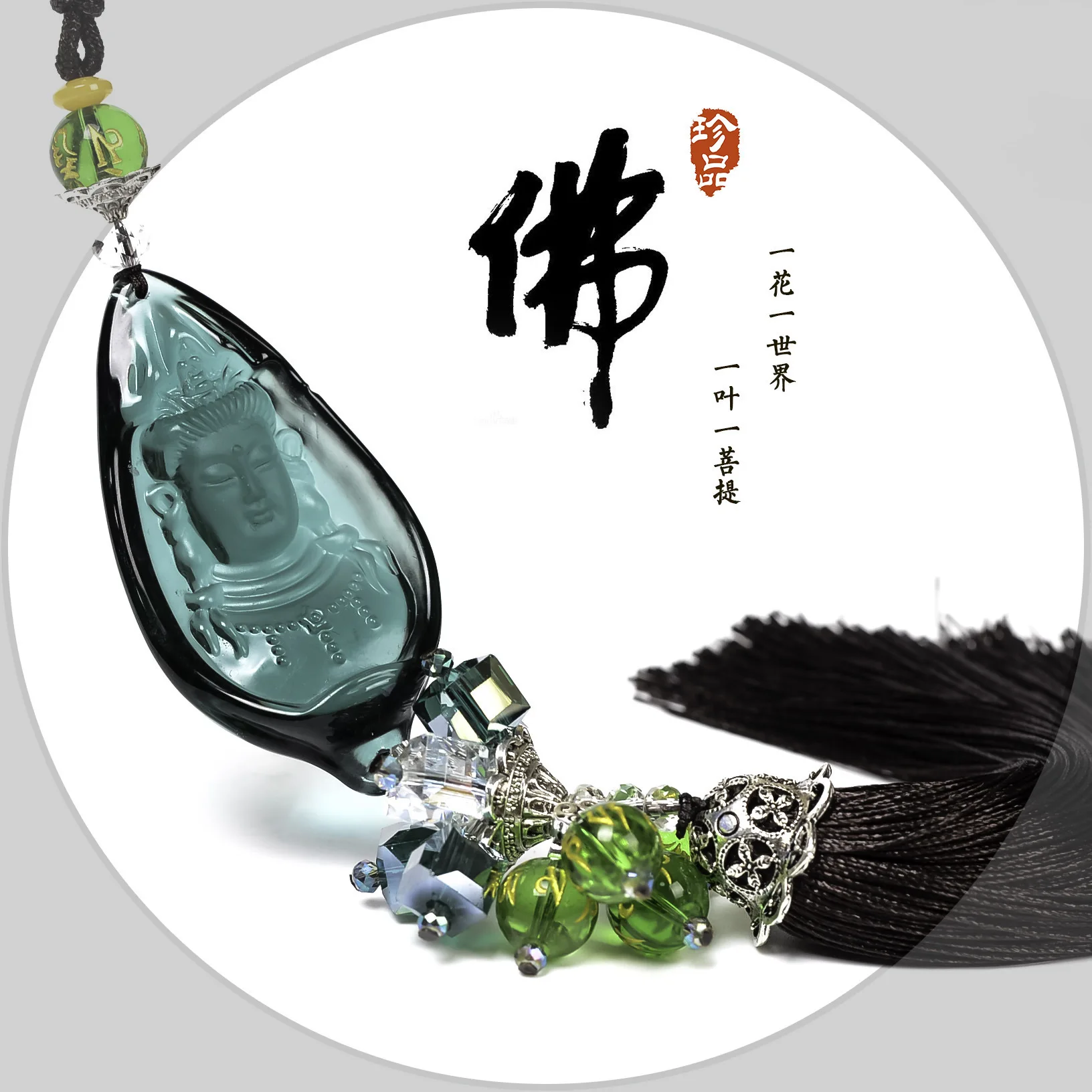 ORIGINAL Ancient Coloured Glaze Buddha Head Pendant Car Interior Trim Decorations Car Mounted Hanging Decora