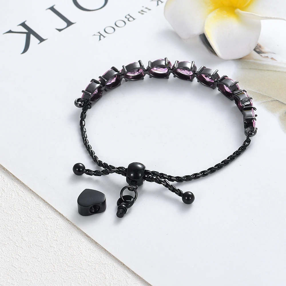 IJD1234 Stainless Steel Cremation Inlay Crystal Adjustable Crystal Memorial Bracelet for Ashes Urn