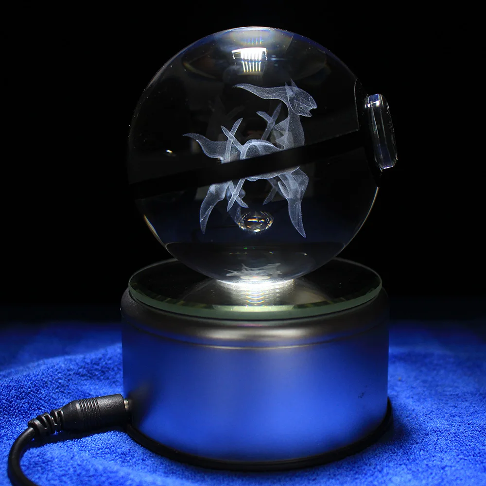HOT Sale New 3D Laser Pokemon Go Crystal Arceus Sculpture Ball With Led Light Base for Cartoon Souvenirs