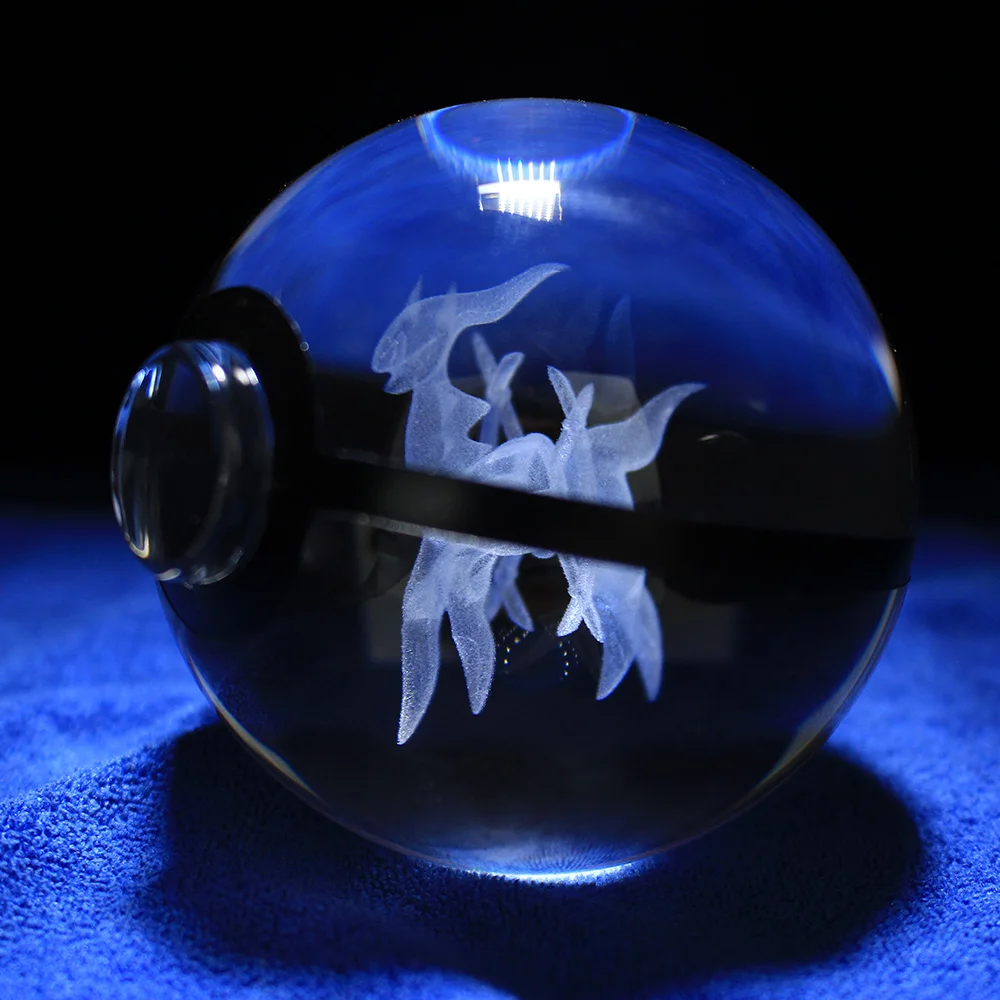 New 3D Laser Pokemon Go Crystal Arceus Sculpture Ball With Led Light Base for Cartoon Souvenirs