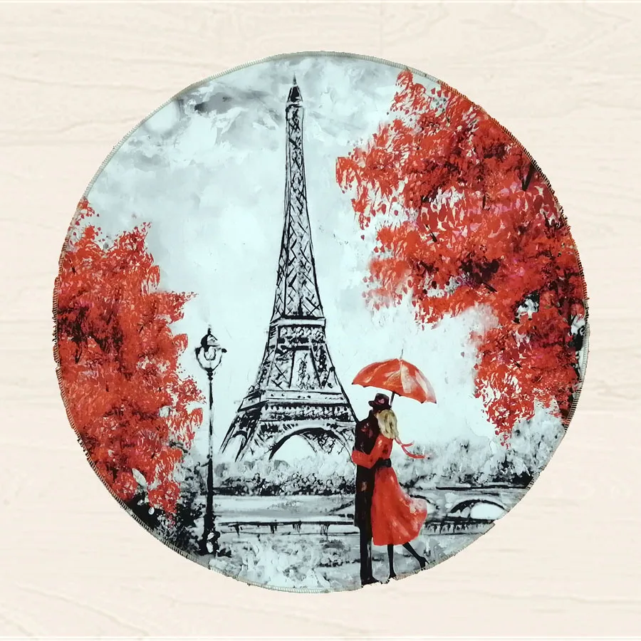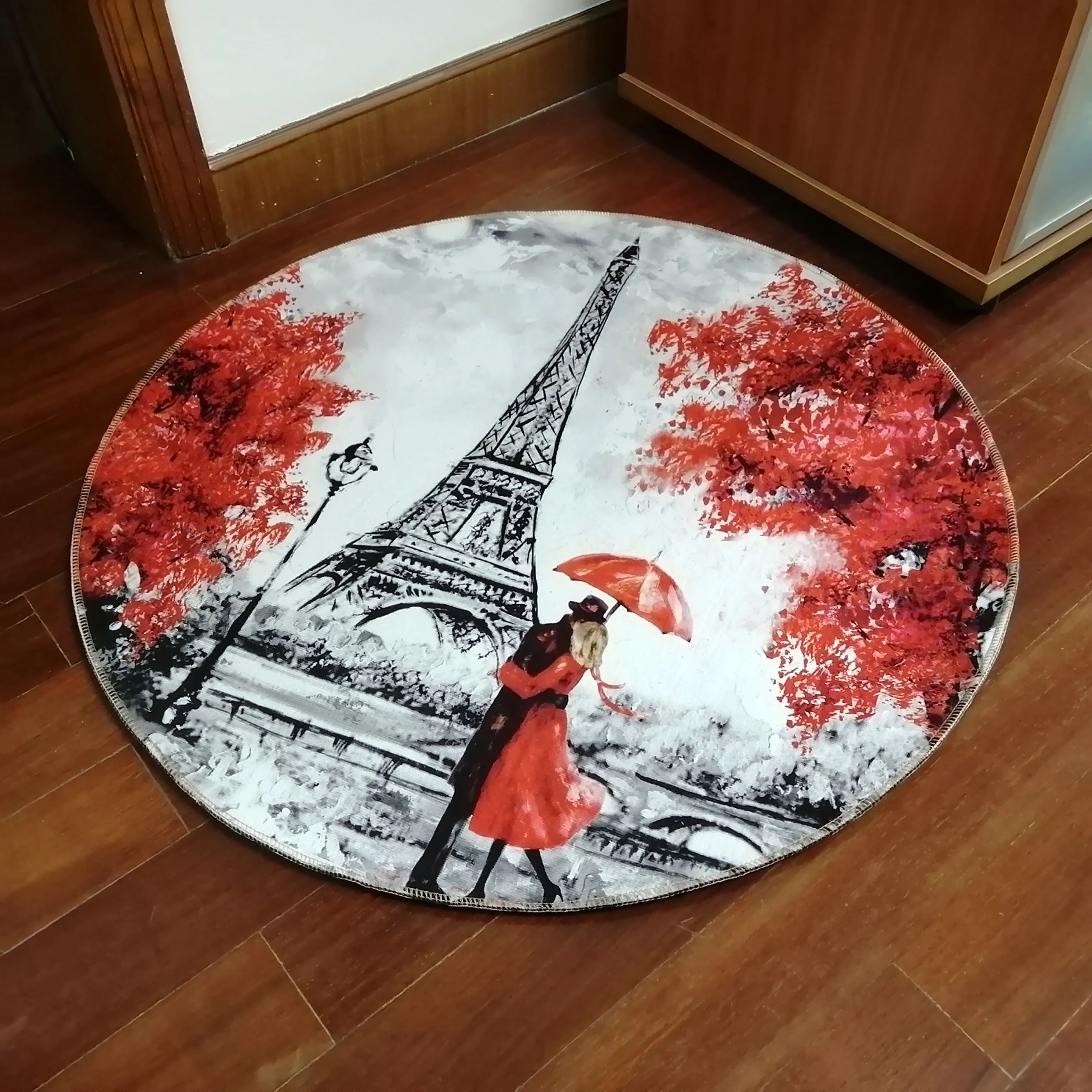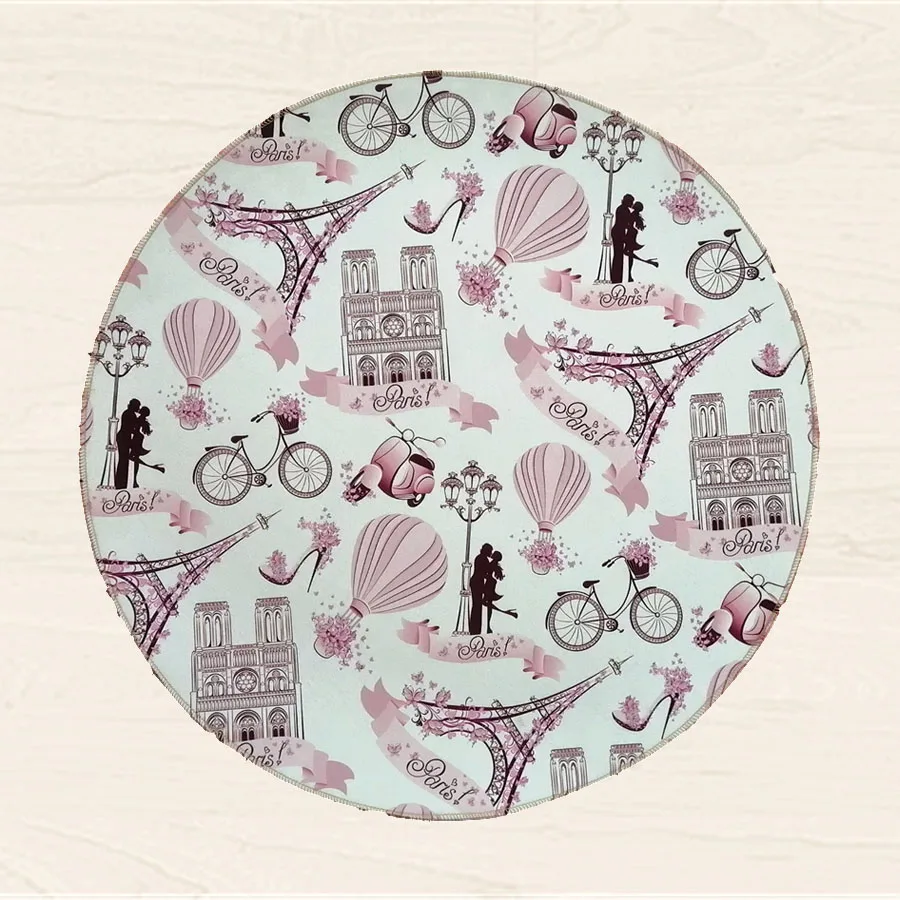 BEST QUALITY Romantic Paris small round rug for living room pink cotton area rug Eiffel Tower souvenir carpet fl