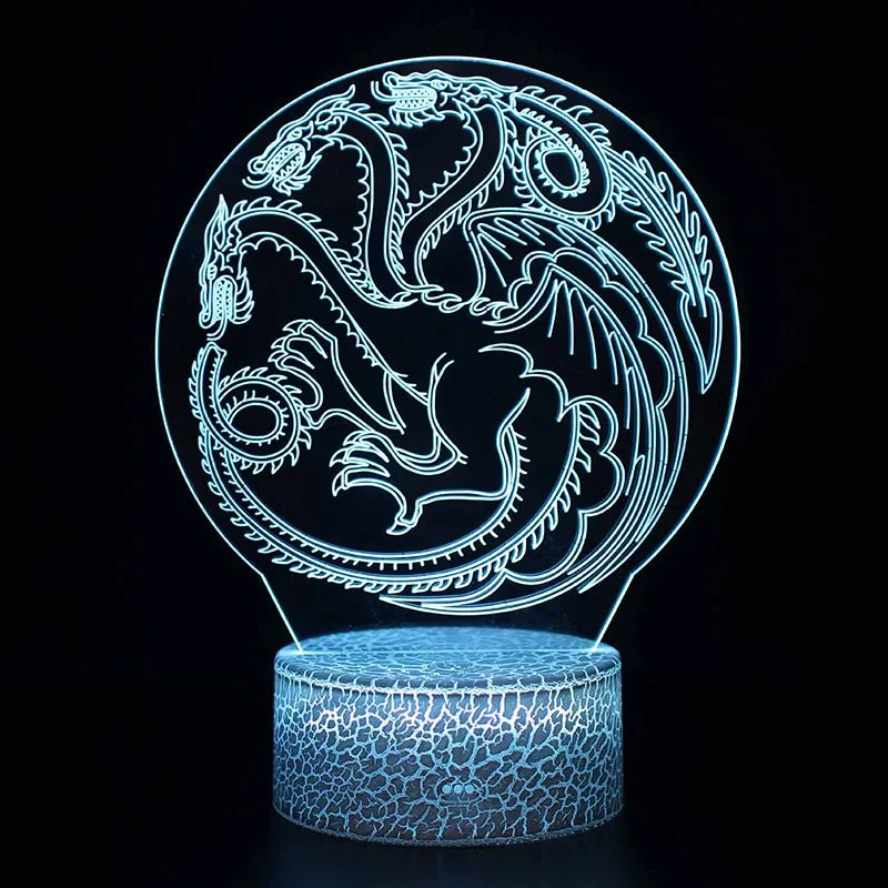 Game of thrones Daenerys Dragon Action Figure illusion 3D Lamp light up Dragon symbol Model Luminou