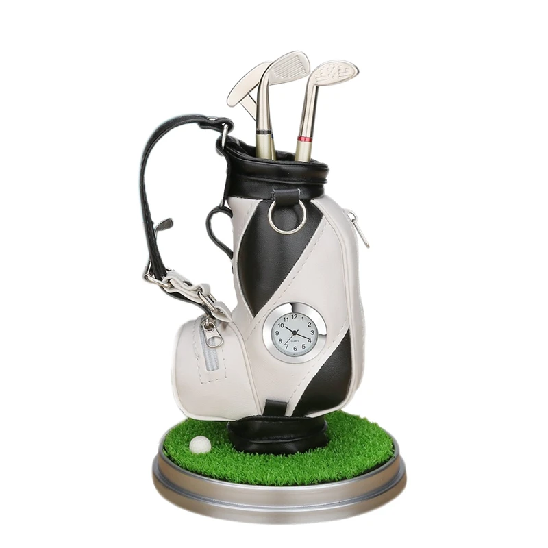 Mini Desktop Aluminum Alloy Golf Bag Pen Holder with Golf Pens Clock 6-Piece Set Of Golf Souvenir