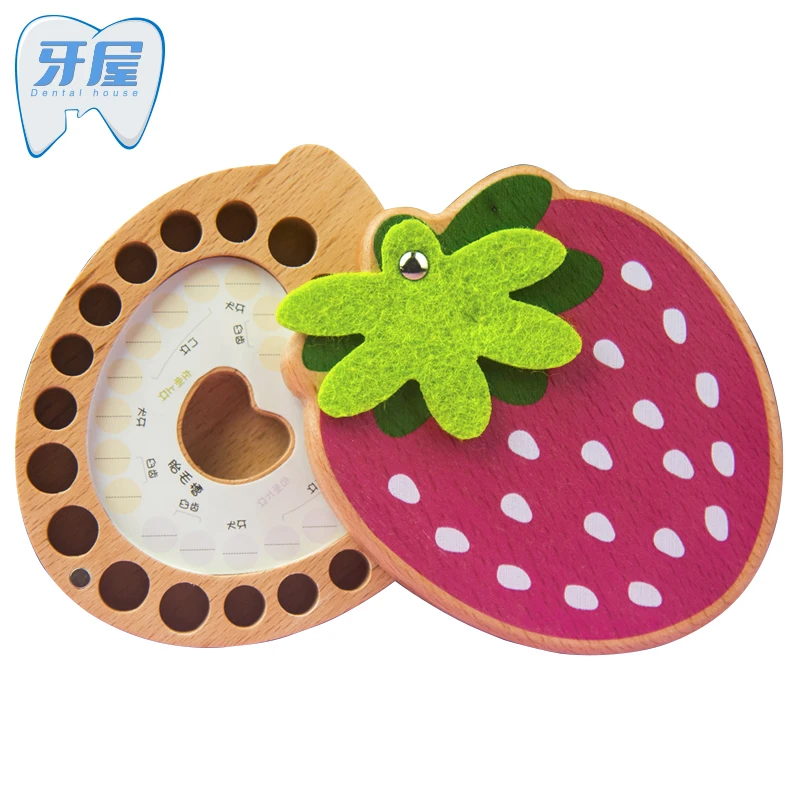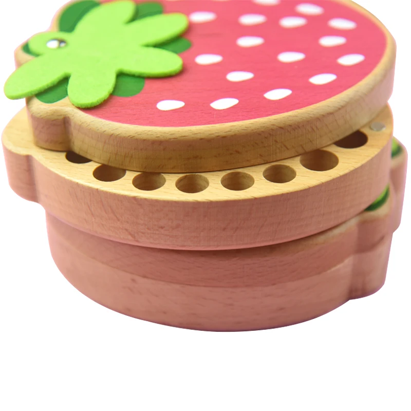 Children's wooden strawberry tooth box souvenir deciduous tooth box collection souvenir children ha