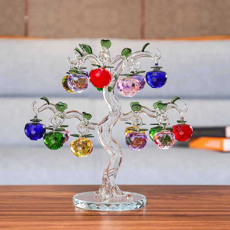 Crystal Glass Apple Tree with 6/10/12/16/18/36pcs Apples Fengshui Craft Home Decor Figurines Christ