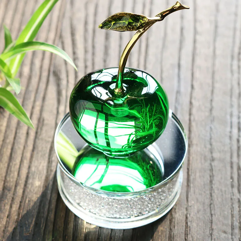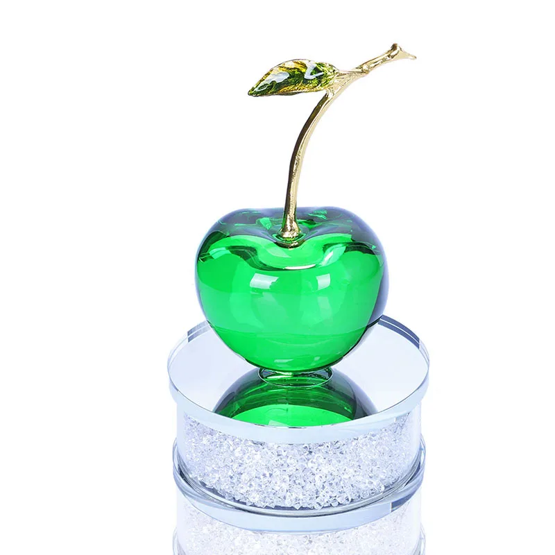 HIGH QUALITY H&D Crystal Fruit Green Cherry Shape Figurine Art Glass Ornament with Rhinestones Base Souvenir Gif